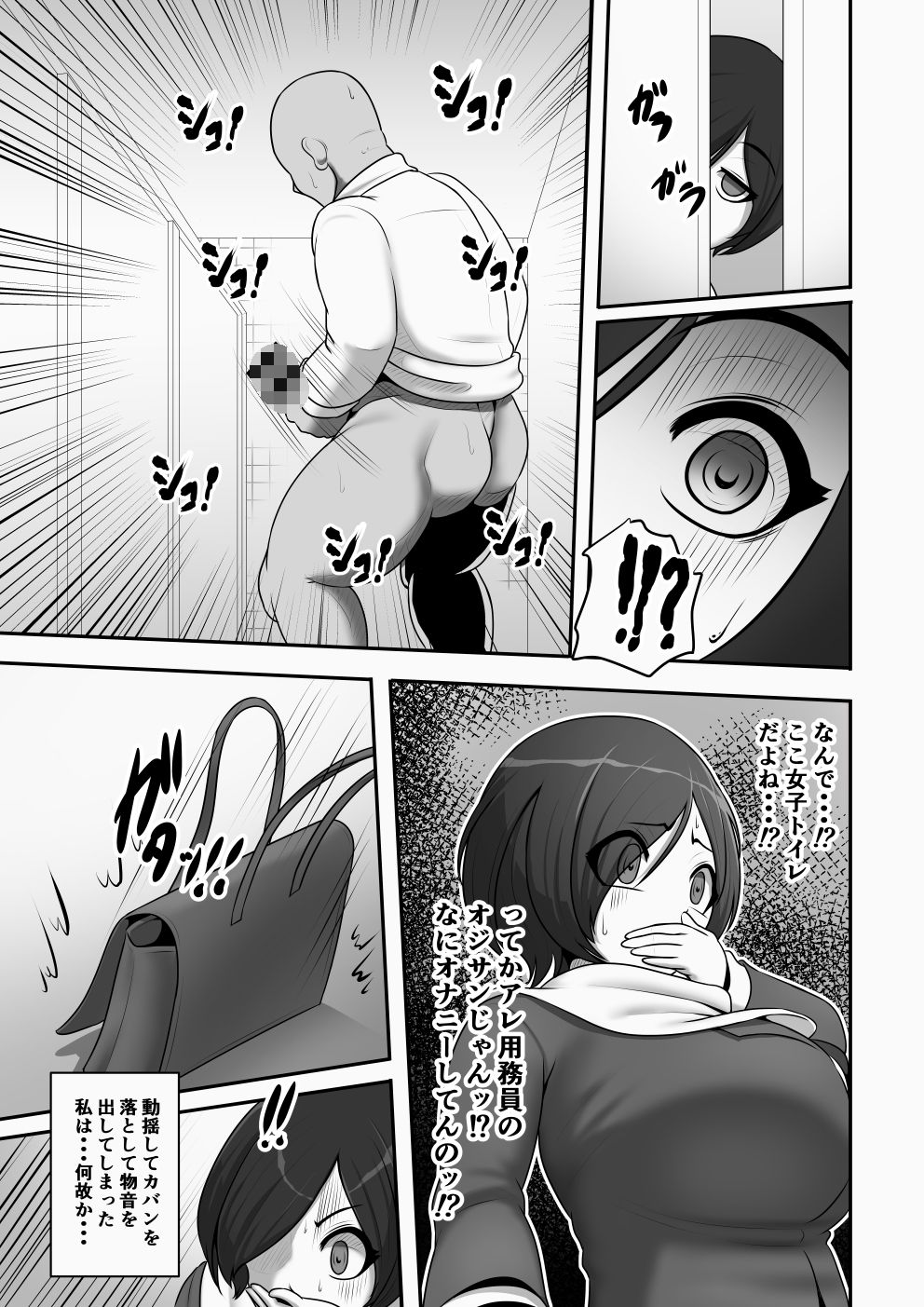 そんな時用務員のオジサンが女子便でオナニーをしている所に遭遇。