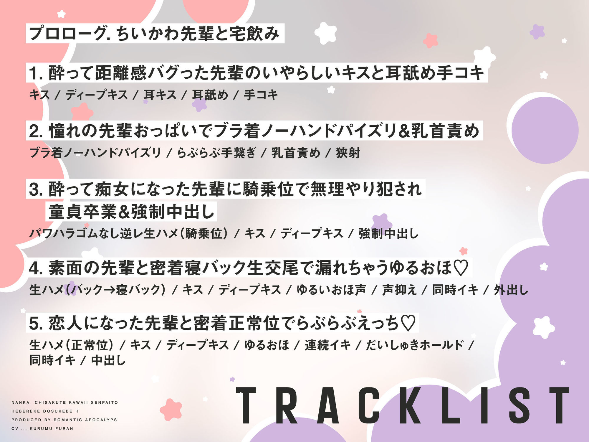 ◆【トラックリスト】素面でしおらしくなった先輩をハメたおす◇