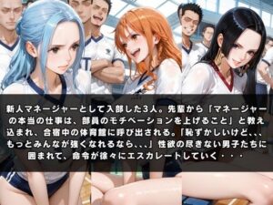 新人マネージャーとして入部したレ〇・〇ム・エ〇リアの3人は、先輩部員たちから「マネージャーの本当の仕事は、部員のモチベーションを上げること」と教え込まれ、体育館に呼び出される。