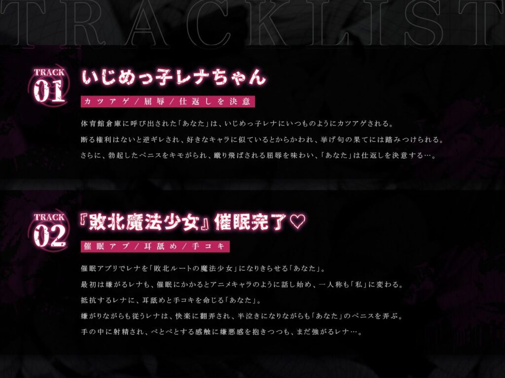 なりきり魔法少女、尊厳破壊ハメ地獄♪〜いじめっ子レナちゃんを催●調教、イタすぎ魔法少女の敗北ごっこ♪〜(KU100マイク収録作品)
